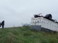 Al llegar al lugar el Equipo Emergente confirman que se trata de un camión Mercedes Benz 1114 (dominio colocado TOG- 969) conducido por el señor Domingo Chantír quien presentaría cortes en el cuero cabelludo, aunque se niega a ser trasladado al hospital Capredoni para su atención.