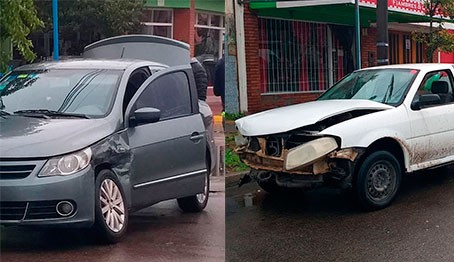 Dos conductores coincidieron en tiempo y espacio alrededor de las 12.40 horas de este miércoles, en la esquina de avenida San Martín y calle Necochea. La camioneta Saveiro evidencia un fuerte golpe en la parte delantera, en tanto el Volkswagen Gol tiene un impacto en su neumático delantero inzquierdo.