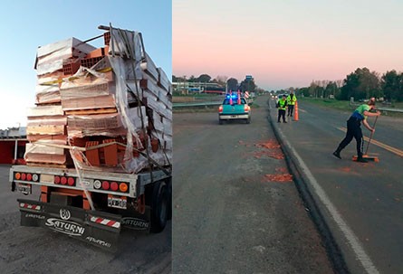 Cabe destacar que se trataba de ladrillos para la construcción, que serían proveniente de la zona de Olavarría. Seguridad Vial realizó el apoyo en control de tránsito.-