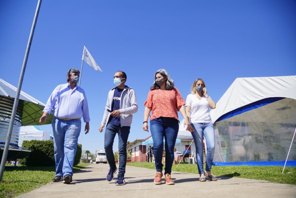 El mandatario comunal recorrió la muestra ganadera de la Sociedad Rural, acompañado por el presidente de la institución Fernando Alzueta, la subsecretaria de Agricultura, Ganadería y Pesca, Carla Seain, la secretaria de Asuntos Agrarios del Municipio, Lorena Carona, y el director de Turismo, Emilio Leonetti.