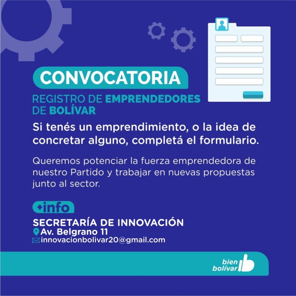 Registro de Emprendedores locales: Se encuentra abierta la inscripción en el Municipio de Bolívar