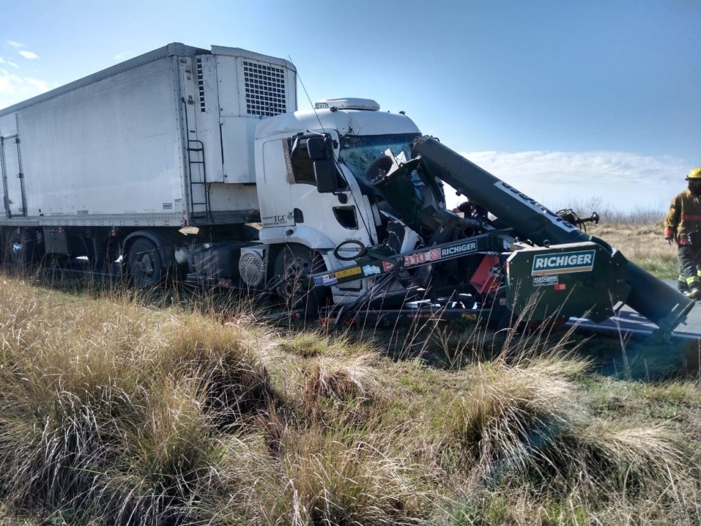 Ocurrió este jueves por la mañana, en ruta provincial 65 cuando un camión que remolcaba un semi castigó desde atrás a una formación agrícola