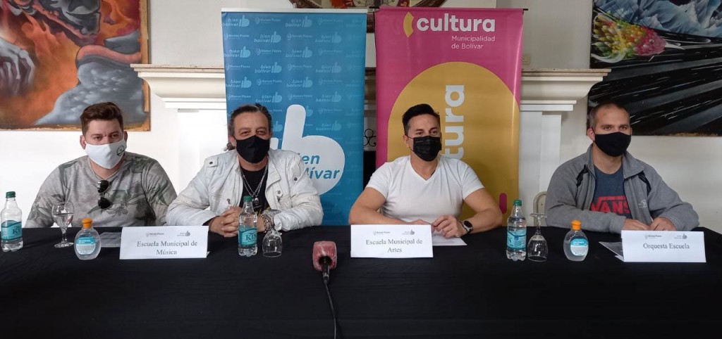 El director de Cultura del Municipio, Jorge Fernández, junto a los profesores Hernán Caraballo, Jorge Godoy y Damián Bellisomi, brindó detalles este viernes sobre el comienzo de las actividades gratuitas, pertenecientes a la Escuela Municipal de Artes, a la Orquesta Escuela y a la Escuela Municipal de Música.