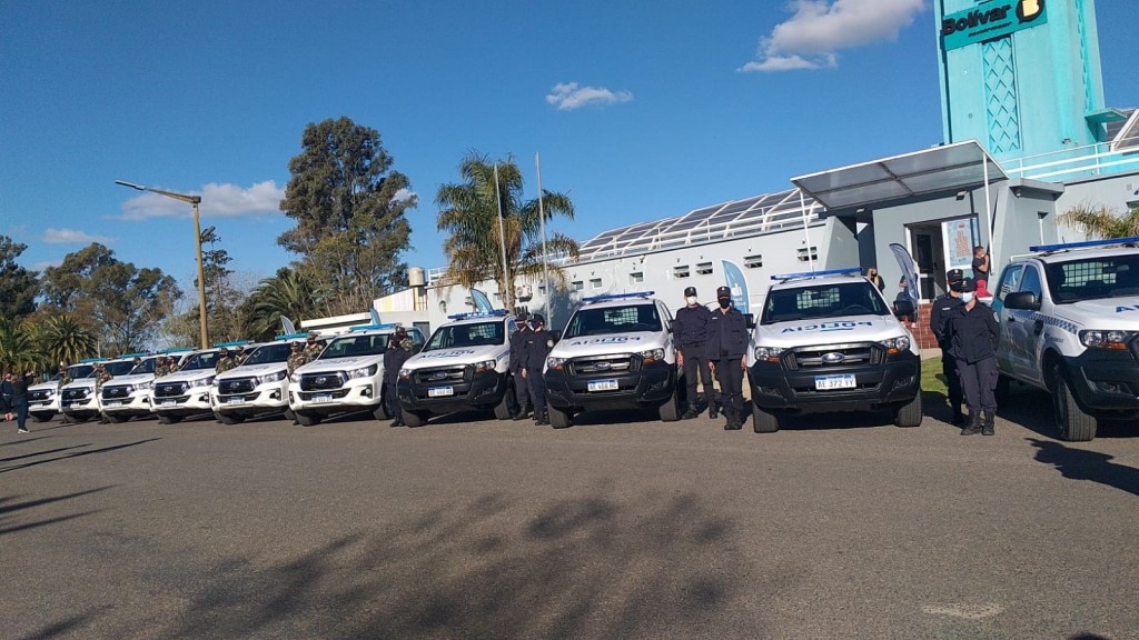 Puesta en marcha de 10 nuevos patrulleros     A continuación, el Gobernador se trasladó hacia la sede del Natatorio Municipal, donde encabezó la puesta en funcionamiento de 10 nuevos patrulleros, en el marco del programa de Fortalecimiento de la Seguridad.   “Estamos alcanzando una renovación total del parque automotor de la Policía de la Provincia en el municipio Bolívar”, sostuvo Kicillof e indicó: “Junto a los dos patrulleros que habíamos incorporado anteriormente, ya son 12 vehículos cero kilómetro para la seguridad rural y urbana”.     “Desde la Provincia asumimos el compromiso y la obligación de cuidar a quienes producen y generan riqueza, contando con una Policía especializada que entienda sus necesidades”, afirmó Berni y agregó: “Estos vehículos 4x4 son los mismos que utilizan los hombres y las mujeres del campo, acorde a las funcionalidades que se requieren en la zona”.     Las 10 camionetas pick ups se suman a los dos vehículos que se habían puesto en marcha a fines del año pasado y se distribuirán entre el Comando de Prevención Rural y la Comisaría.     En ese sentido, Pisano enfatizó que “es la primera vez que se hace una renovación completa de todos los móviles de la Policía, alcanzando un hecho histórico para el plan de seguridad que tenemos en nuestro distrito”.     "Queremos generar arraigo en los jóvenes, con educación, vivienda y trabajo para que puedan desarrollar una vida plena en esta ciudad”, remarcó Bucca y añadió: “Para eso estamos desarrollando infraestructura, renovando los espacios públicos, fortaleciendo el sistema de salud, y hoy también llevando muchísima más seguridad a nuestros vecinos”.     “Tanto en el interior como en el conurbano, para que la seguridad sea una realidad es fundamental invertir y brindarle los instrumentos necesarios a nuestra Policía”, explicó Kicillof y concluyó: “Durante la pandemia nos dedicamos a cuidar la salud y a avanzar con la vacunación, pero nunca dejamos de trabajar para que haya más seguridad en la Provincia”.