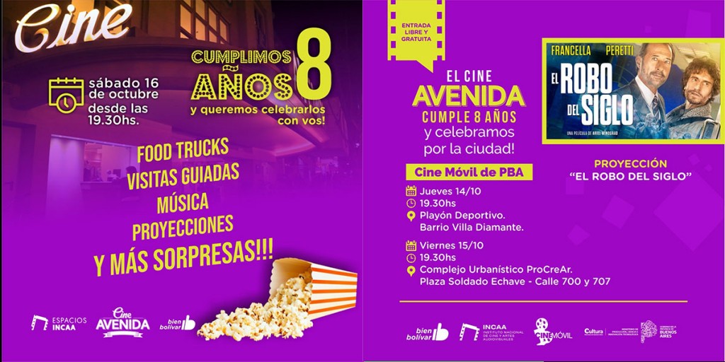 Para comenzar con los festejos, el Cine Móvil de la Provincia de Buenos Aires recorrerá diferentes barrios de la ciudad para que la comunidad pueda disfrutar la proyección de la película argentina “El Robo del Siglo”.