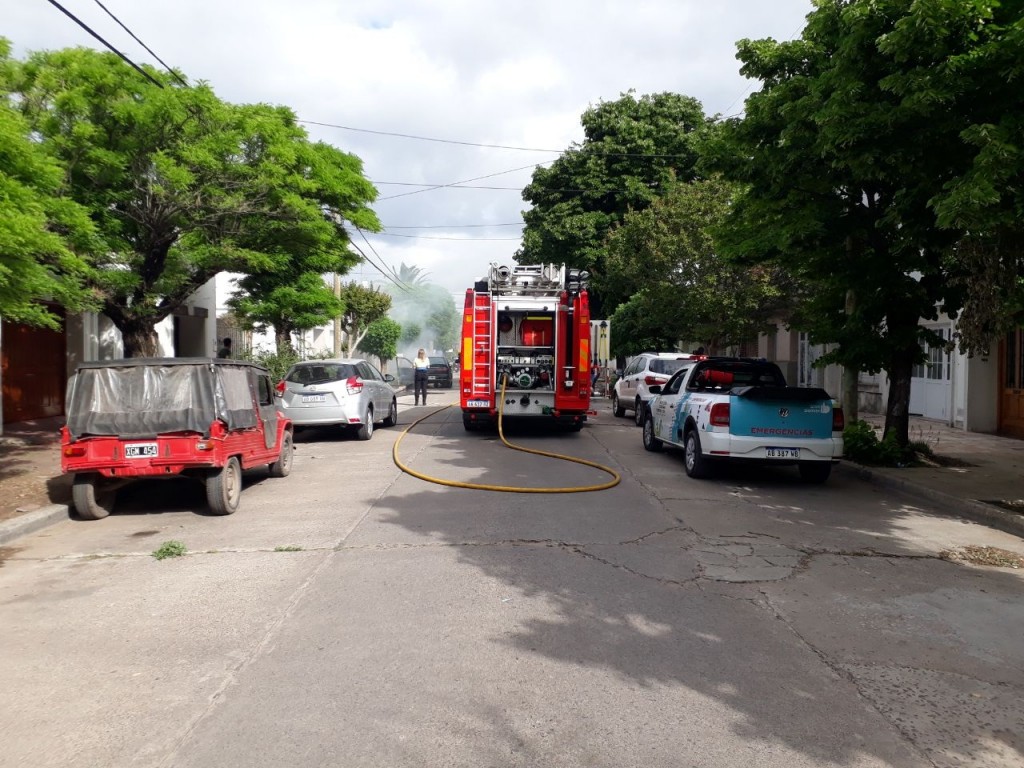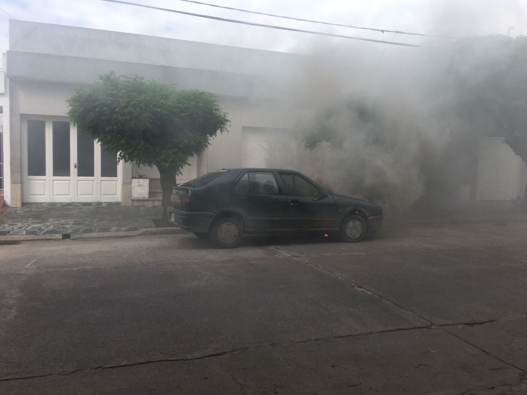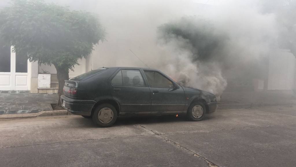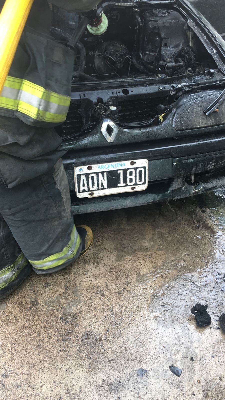 Se trata de un Renault 19, dominio colocado AQN-180,  y se presume que el foco ígneo se habría iniciado en el motor. Una dotación de Bomberos Voluntarios arriba al lugar, en la Unidad n°4 a cargo de Franco Rojas, para extinguir el fuego.