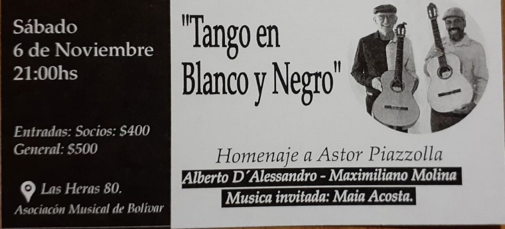 Con la presentación de Alberto D’ Alessandro y Maximiliano Molina, oriundos de Bahía Blanca, quienes estarán acompañados por la artista invitada Maia Acosta la sede de Las Heras 80 se copará con amantes del 2x4 en homenaje al gran Piazzolla.
