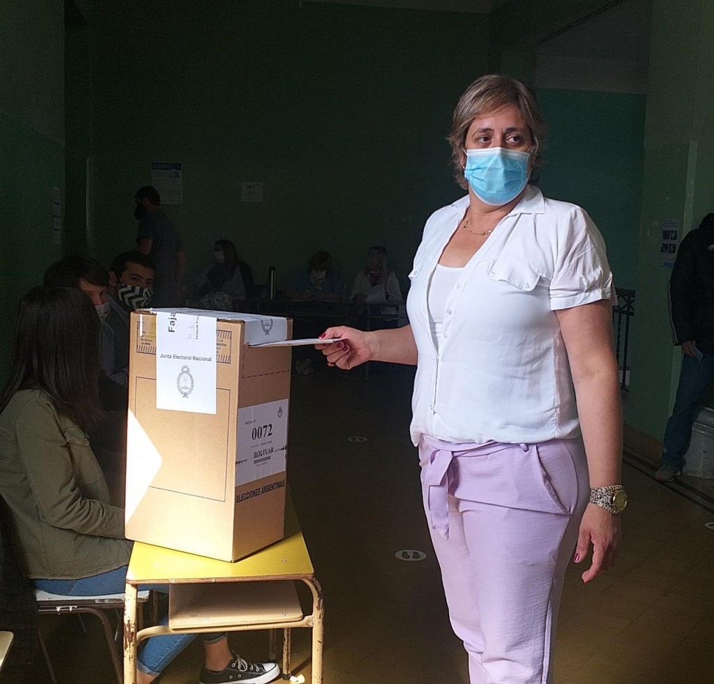 La primera candidata a concejal por el espacio Primero Bolívar, emitió el sufragio en la mesa nº72 del Instituto Superior de Formación Docente nº27. y habló con los medios locales.-