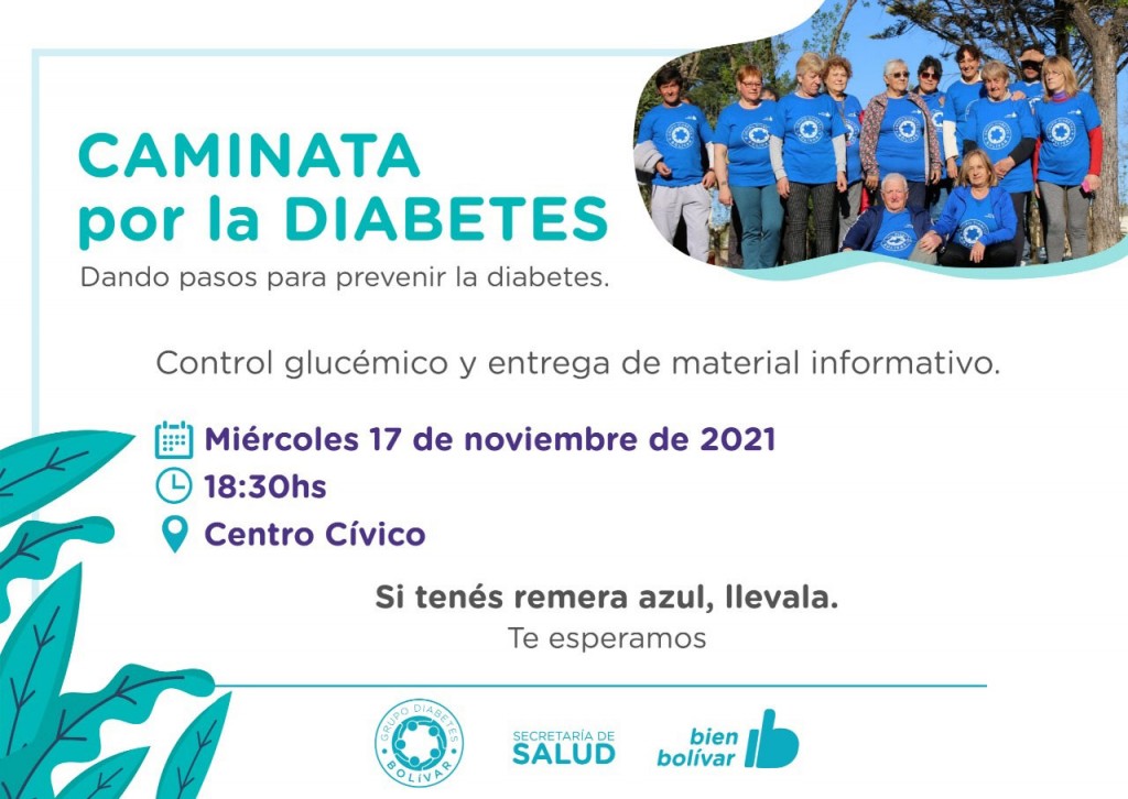 La Secretaría de Salud de la Municipalidad y el grupo Diabetes Bolívar convocan a realizar una caminata preventiva por la diabetes con el objetivo de promover una vida saludable.