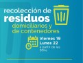 Se solicita a la comunidad la colaboración necesaria para no depositar la basura en la vía pública durante las jornadas en las que no funcionará el servicio de recolección, con el fin de mantener limpia la ciudad.