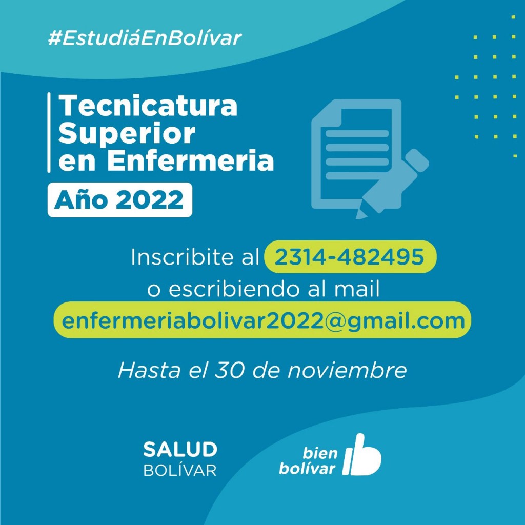 Los y las interesadas en realizar la preinscripción pueden comunicarse al teléfono 15482495 o a través del mail enfermeriabolivar2022@gmail.com.