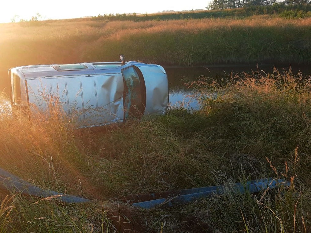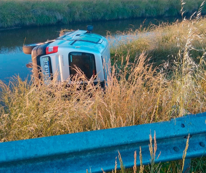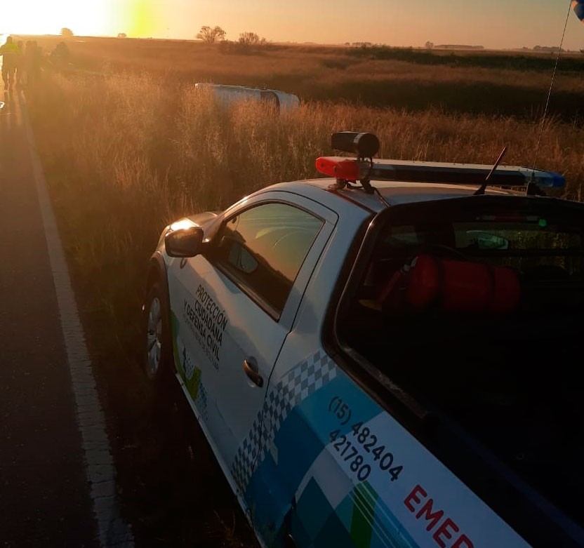Dos pescadores que regresaban desde Bahía San Blas hacia Saladillo, perdieron el control de su camioneta y terminaron volcando en el préstamo de la mencionad arteria nacional.-