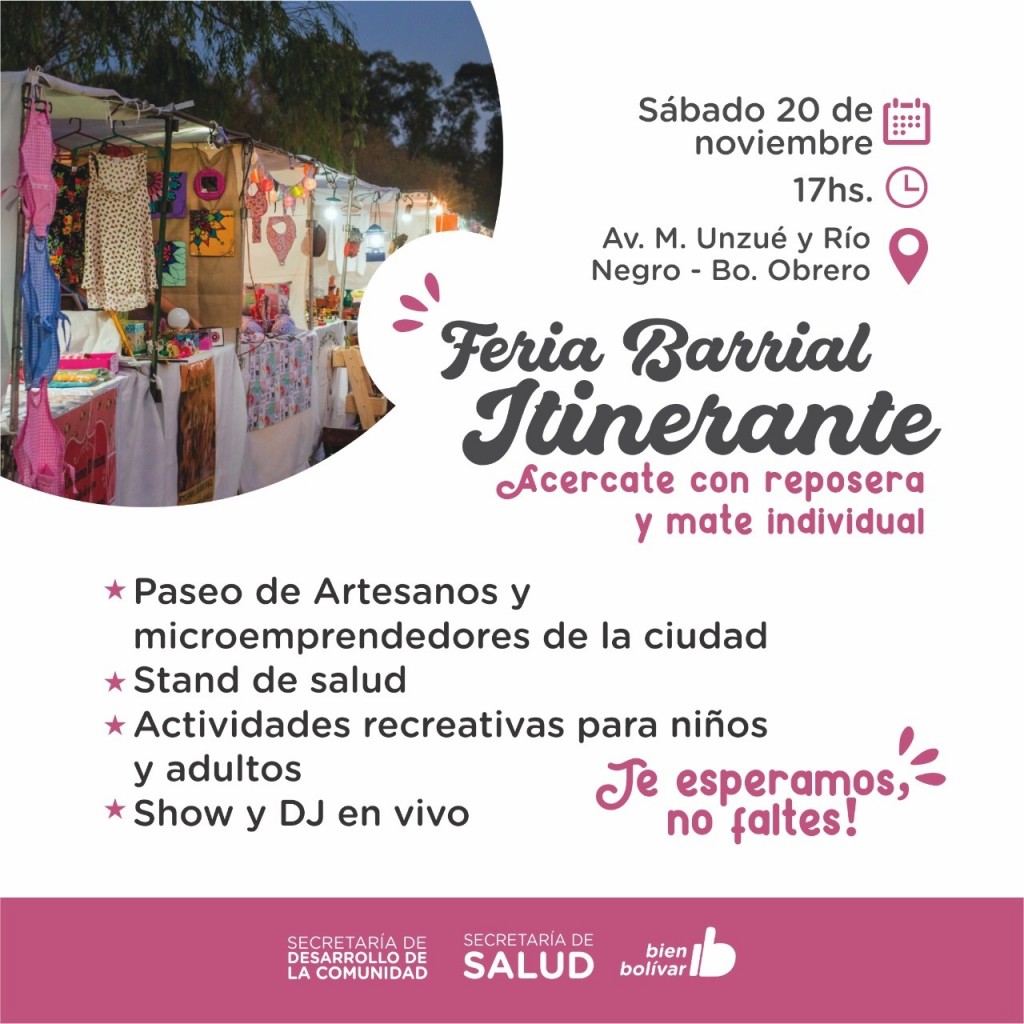 Este sábado 20 de noviembre, se llevará a cabo una nueva edición de la feria barrial itinerante de emprendedores locales organizada por el Municipio, en barrio Obrero.