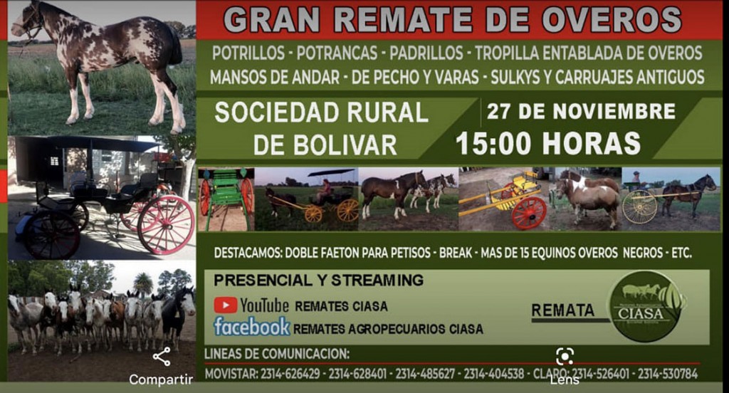Gran remate de equinos y carruajes el próximo sábado 27 de noviembre en la Sociedad Rural de Bolívar