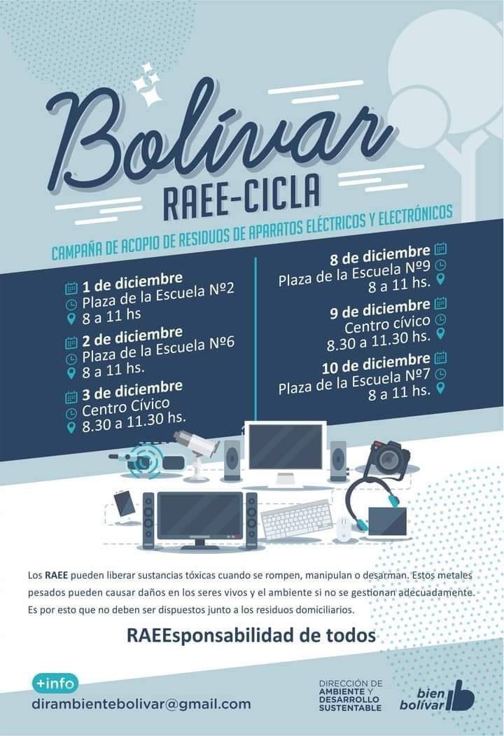 BOLÍVAR RAEE-CICLA; La Dirección de Ambiente llevará adelante una campaña de acopio de aparatos eléctricos y electrónicos