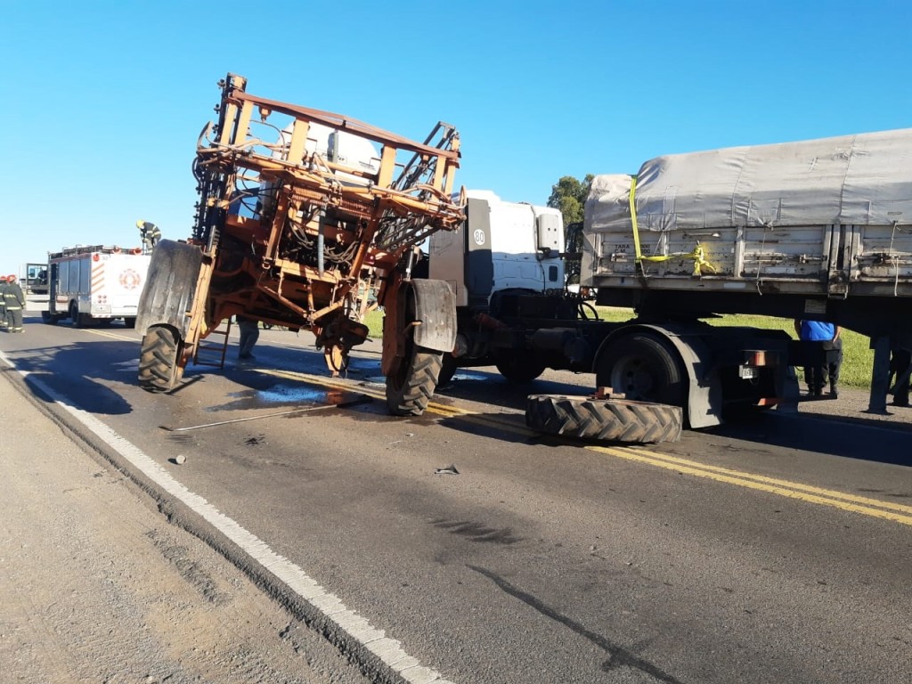 Ocurrió una colisión entre un camión Fiat Iveco 170E22 con dominio colocado KXS 496, conducido por el señor Héctor Nanni que tendría domicilio en Olavarría, una fumigadora terrestre que habitualmente se denomina "mosquito", conducida por Gabriel Aguilar, que sería de Bolívar.
