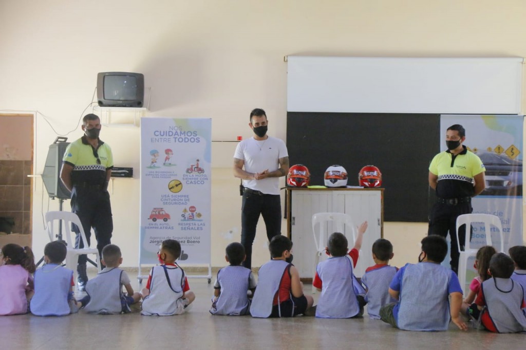 Con la finalidad de educar a niños/as sobre una nueva cultura vial, agentes de Seguridad Vial de la Municipalidad brindaron información para concientizar a los/as pequeños/as que concurren al Jardín de Infantes en el turno mañana y por la tarde.