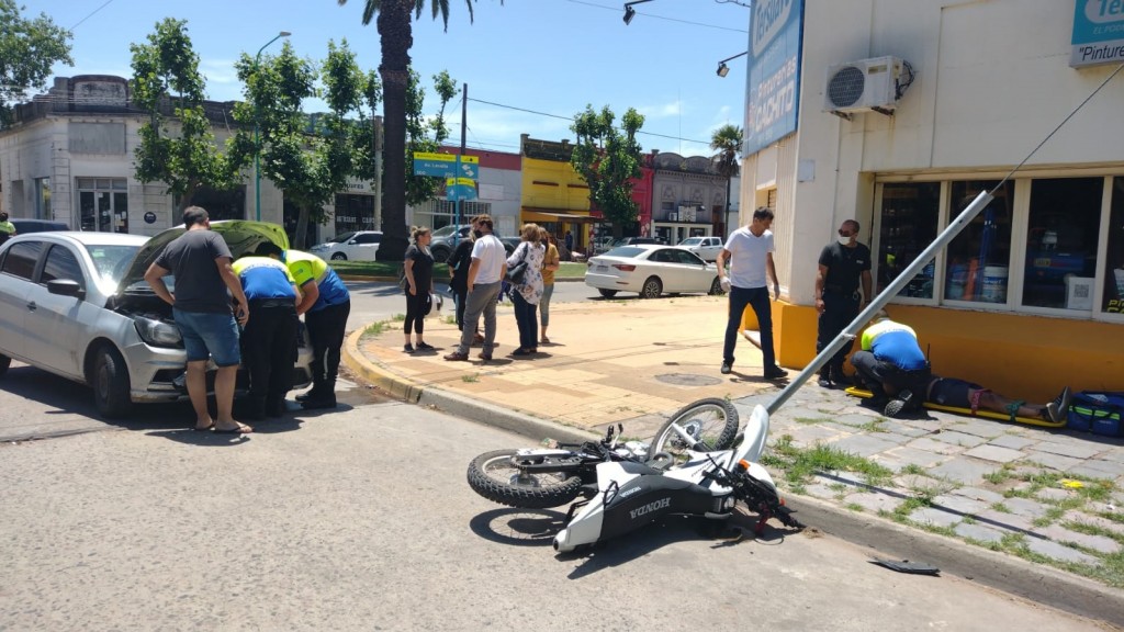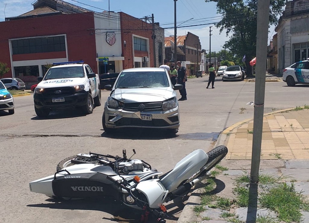 El hecho se dio en horas del mediodía de este jueves en la intersección de calle Roca y Avenida Lavalle al coincidir en tiempo y espacio una motocicleta En Duro y un automóvil.