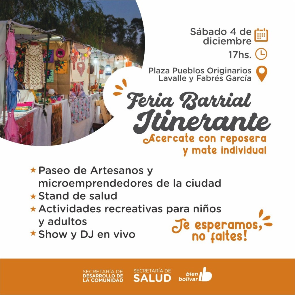Este sábado 4 de diciembre, se llevará a cabo una nueva edición de la feria barrial itinerante de emprendedores locales organizada por el Municipio, en la plaza Pueblos Originarios.