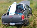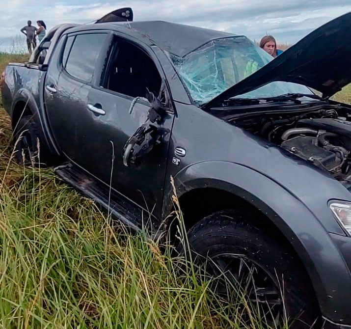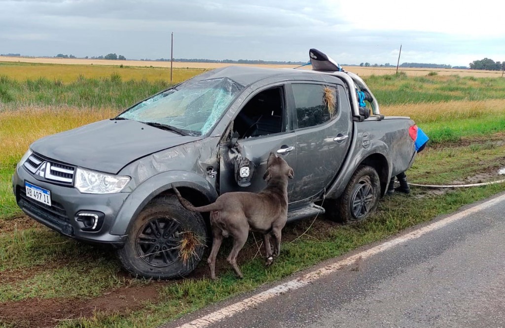 Una pick Up Mitsubishi L-1200 que era conducida por Simón Julián Giovanelli. Domiciliado en la ciudad de San Nicolás, terminó volcando en el préstamo de la rtuta a varios metros de la cinta asfáltica.