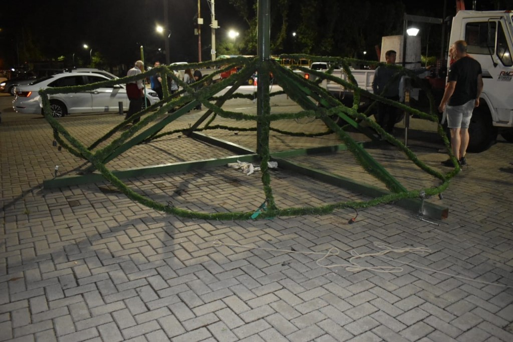 En colaboración con varias áreas municipales, se trabaja no solo en el armado del árbol sino también en lo que ha conexión eléctrica que cada año se reacondiciona y repara para que se pueda disfrutar del imponente árbol que cada año es el fondo de la gran foto familiar de la época navideña.