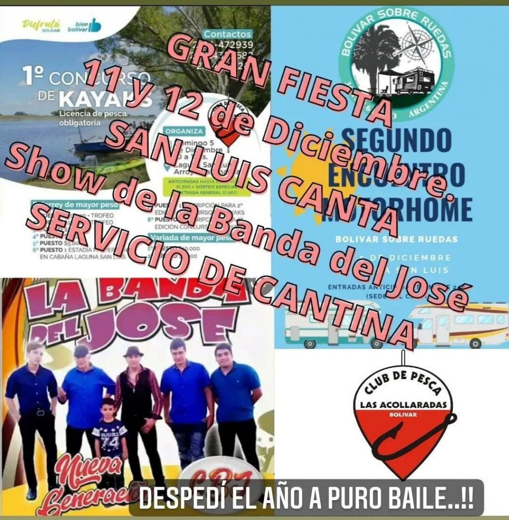 El sábado, tocará “La Banda de José” para pasar una tarde noche distinta, bailando y disfrutando del hermoso paisaje que ofrece la laguna. El domingo, a media mañana, comenzará el 1° concurso de kayaks con importantes premios. Habrá más actividades como el II Encuentro de Motor Home y un gran servicio de cantina a cargo de la institución.