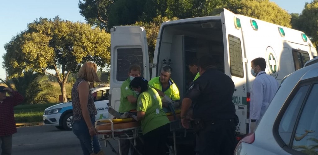 Arribó una ambulancia con el doctor Zamora y personal paramédico, quienes lo inmovilizan y lo trasladan para su mejor atención al nosocomio local.