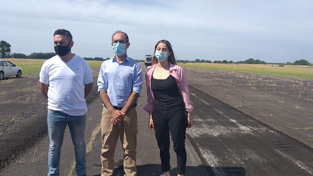 Esta mañana, el jefe comunal Marcos Pisano junto al director de Obras Públicas Lucas Ezcurra, recorrió la obra de mejorado que se está ejecutando en la pista del aeródromo local.