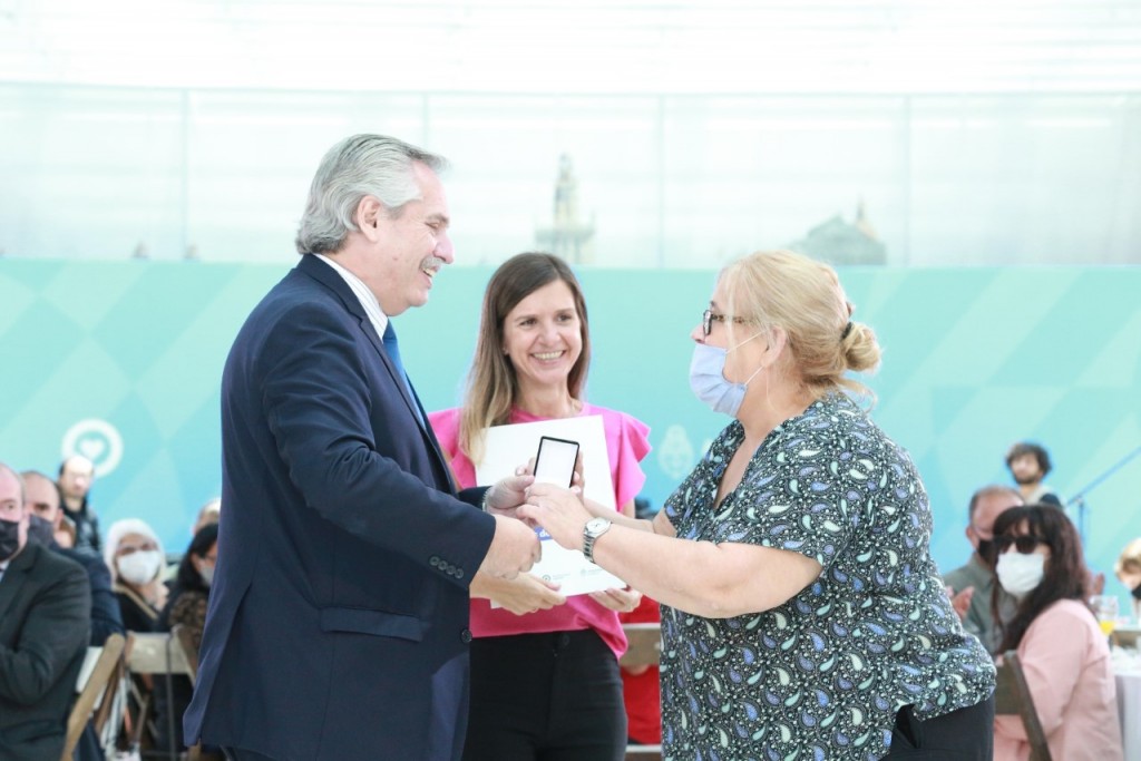 Asimismo, hoy el Jefe de Estado entregó la jubilación 50.000 por el Reconocimiento de Aportes de Tareas de Cuidado que se puso en funcionamiento el 19 de julio de este año a través del Decreto 475/2021, y que permitió que miles de mujeres en edad de jubilarse, que son madres y no contaban con los 30 años de aportes necesarios pudieran sumar años de aportes por cada hijo o hija.