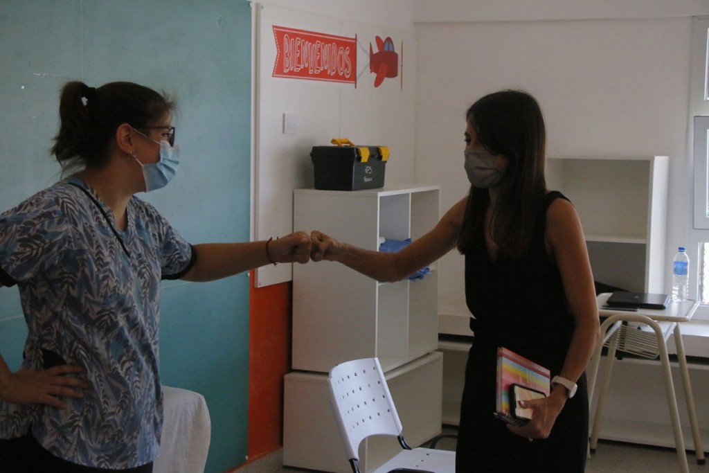 La intendenta interina María Laura Rodríguez inició su semana laboral recorriendo el Jardín “Hagan Lio - Papa Francisco”, donde se encuentra ubicado, desde este lunes, el Centro Vacunatorio Covid-19.