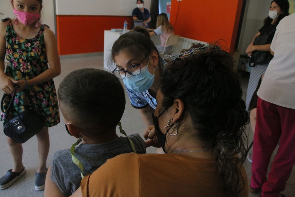 Rodríguez acompañó al personal de salud, a cargo de Mónica Piñel, en una nueva jornada de vacunación en la que se está inoculando a personas mayores de 18 años con segunda dosis libre, y a menores de 3 a 11 años con primera dosis libre.