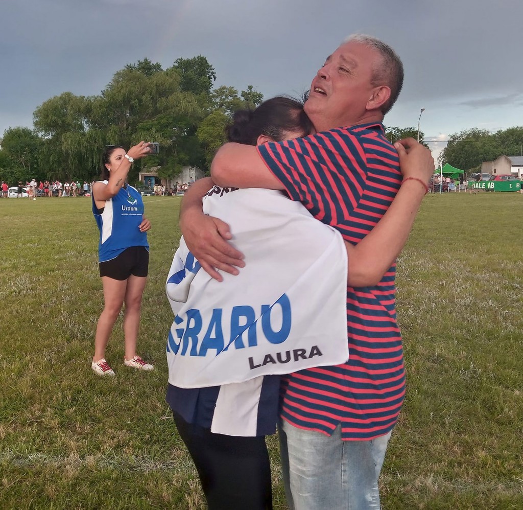 Marcelo Portilla abrazó fuerte a su mujer y soltó lágrimas comprimidas por cómo vive el fútbol el dirigente urdampilletense. Sus muchachos lo habían logrado por tercera vez sin descanso y son campeones del fútbol chacarero como lo identifican en las mesas de discusión. Se impuso por tres goles a cero con autoridad ante un dignísimo rival como Deportivo Pirovano.-