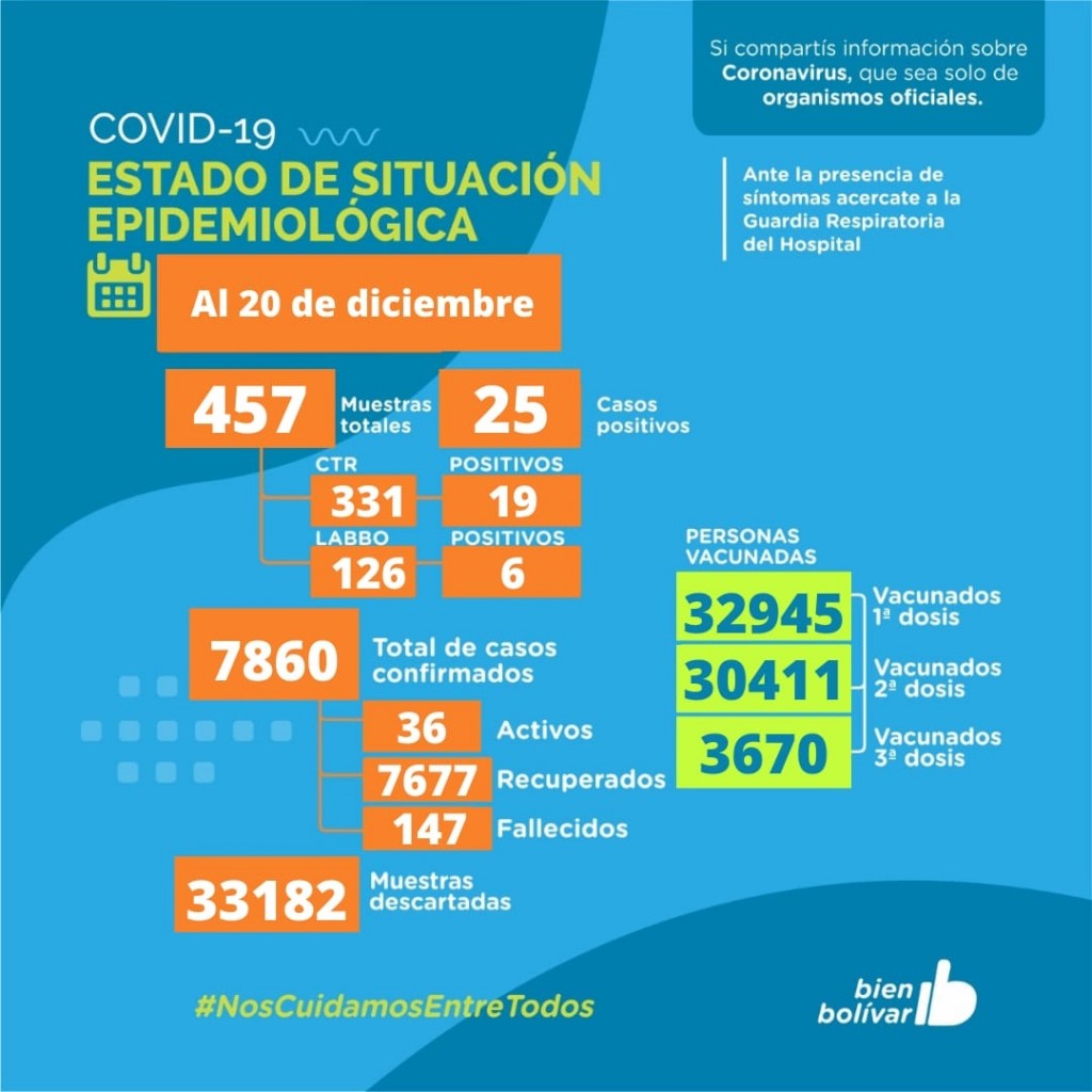 En el partido de Bolívar el promedio fue de 3.5 casos diarios, y si bien no habría personas en Clínica COVID no deja de preocupar la suba de contagios en la provincia y en el país.-