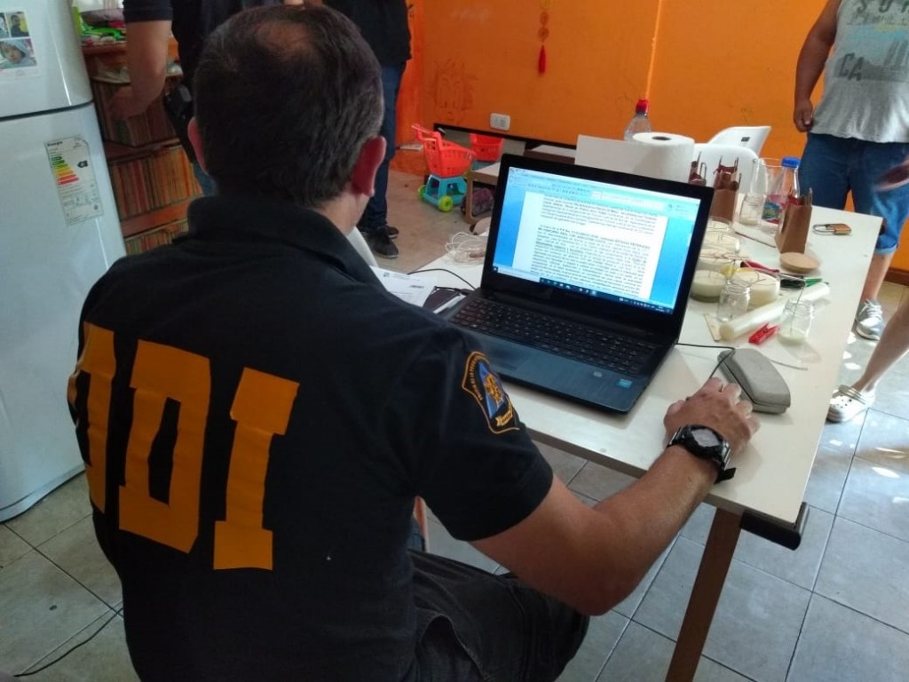 A lo largo de los allanamientos no solo se procedió al secuestro de dinero en efectivo, equipos informáticos y de telefonía, sino que también se observo la existencia de patentes de automóviles, documentación vinculada a compra venta y gestoría, automotriz y formularios en blanco de la marca y la supuesta firma comercial, por otra parte en análisis de los gastos efectuados en las billeteras virtuales se observo la compra de un Televisor Led 40 pulgadas el cual también secuestrado en uno de los domicilios