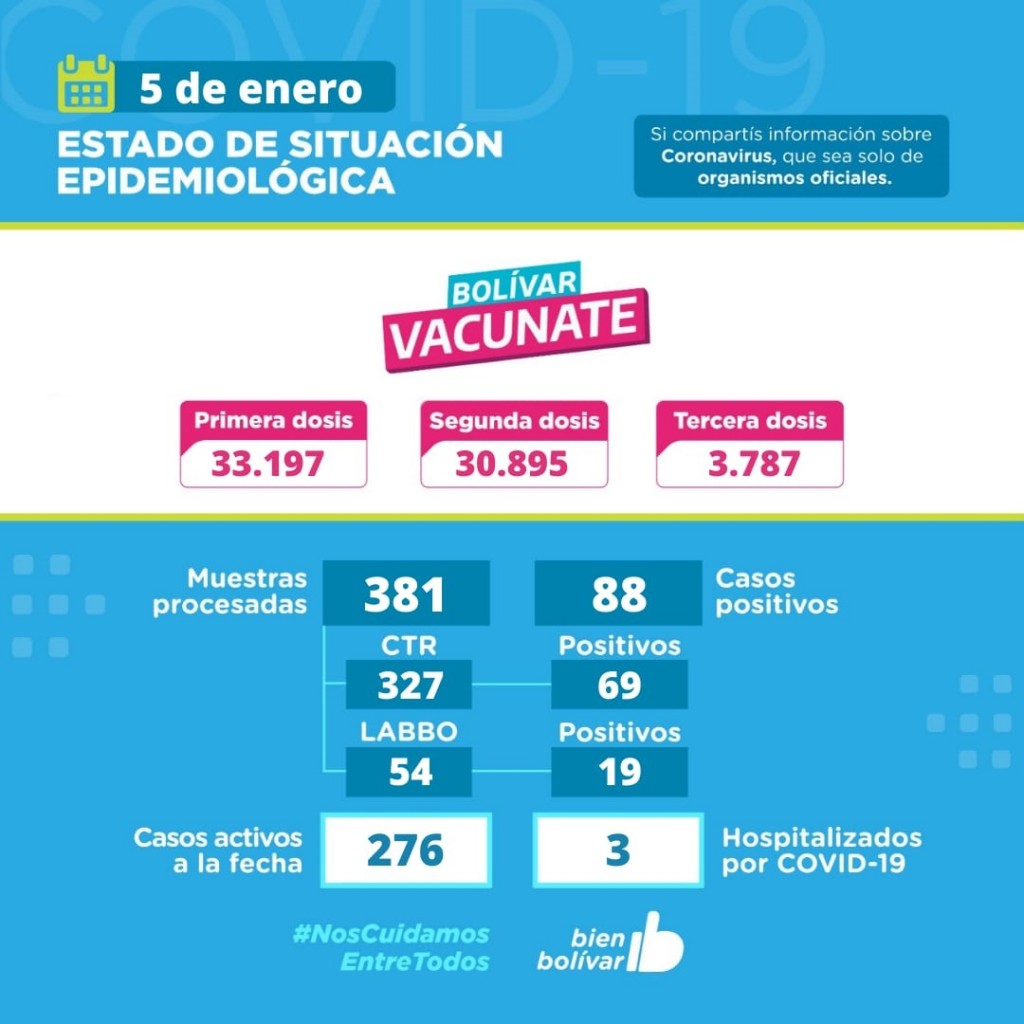 Este miércoles 5 de enero se contabilizan 31 nuevos recuperados y 3 personas hospitalizadas.