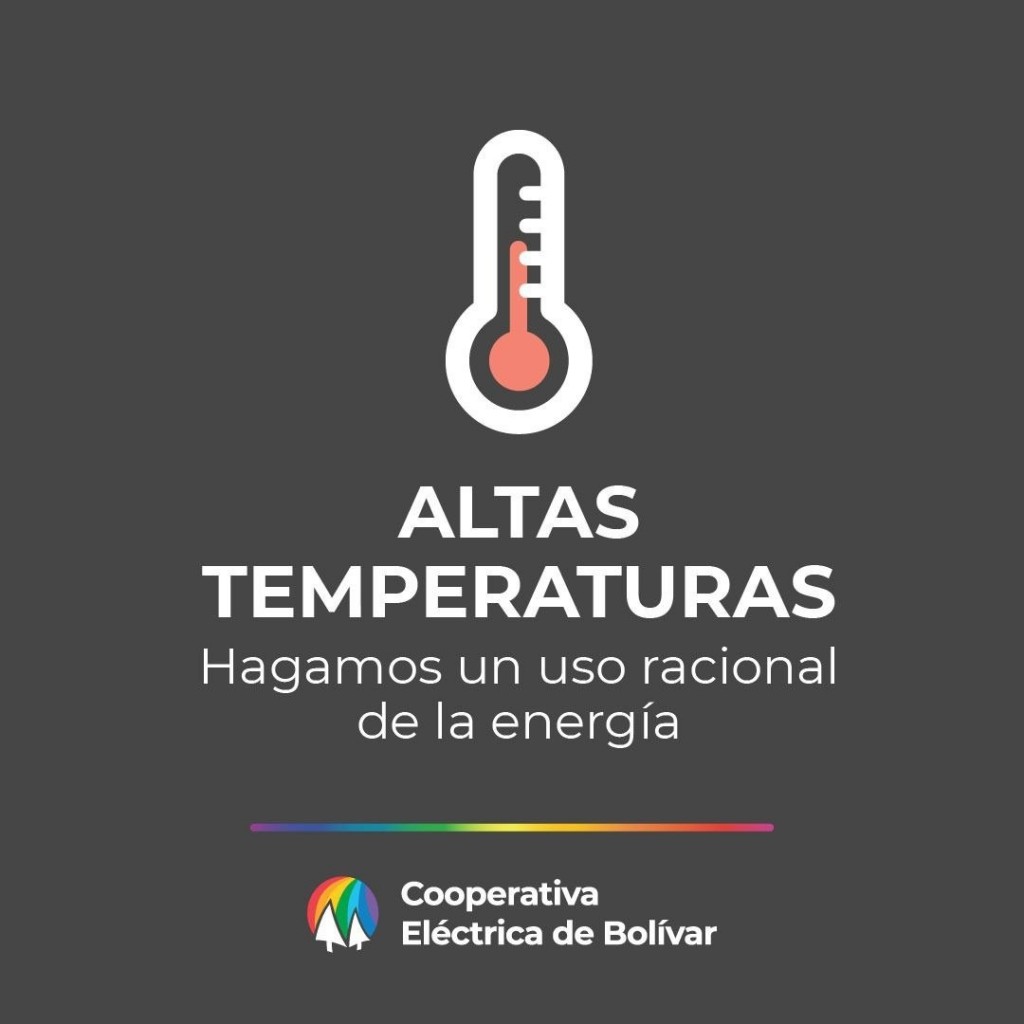 El servicio meteorológico nacional emitió una alerta para esta semana ya que las temperaturas ascenderán por arriba de los 40 grados. Ante esta situación y a sabiendas de la situación que viene atravesando Bolívar en las últimas décadas, será de vital importancia en uso racional de la energía que la Cooperativa tendrá para distribuir entre sus asociados.