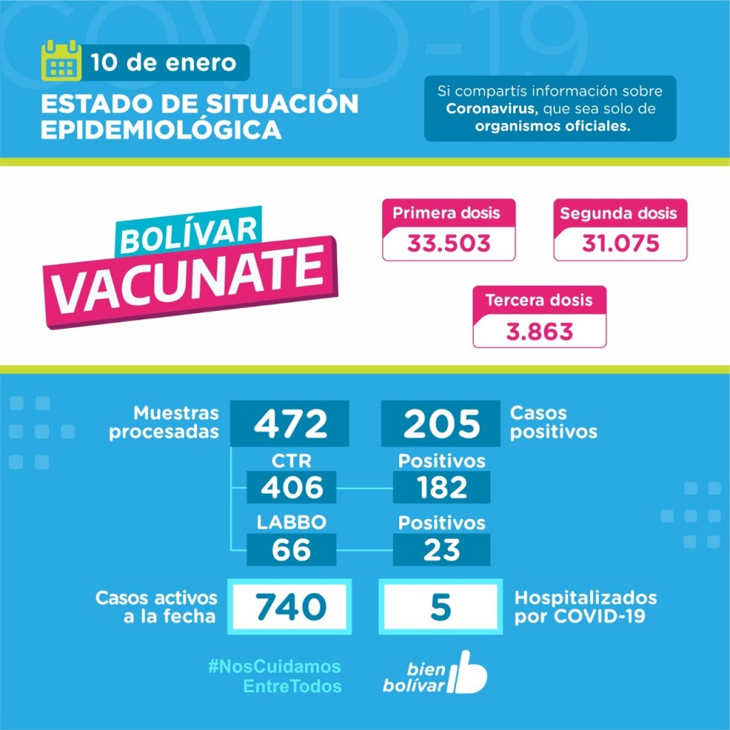 Este lunes 10 de enero se contabilizaron 48 nuevos recuperados y son 5 las personas hospitalizadas, que reflejan el 0,75% del total de los positivos con requerimiento hospitalario