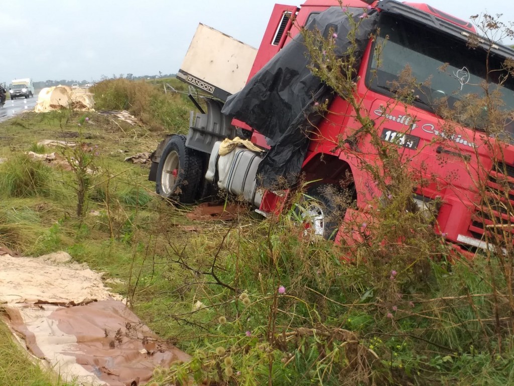 El día jueves 20 de enero por la tarde, un camión Scania conducido por un chofer oriundo de Brasil, se fue abajo y espació su carga en varios metros. Actualmente el transporte se encuentra en el lugar, con serio riesgo para quienes transiten por allí.-