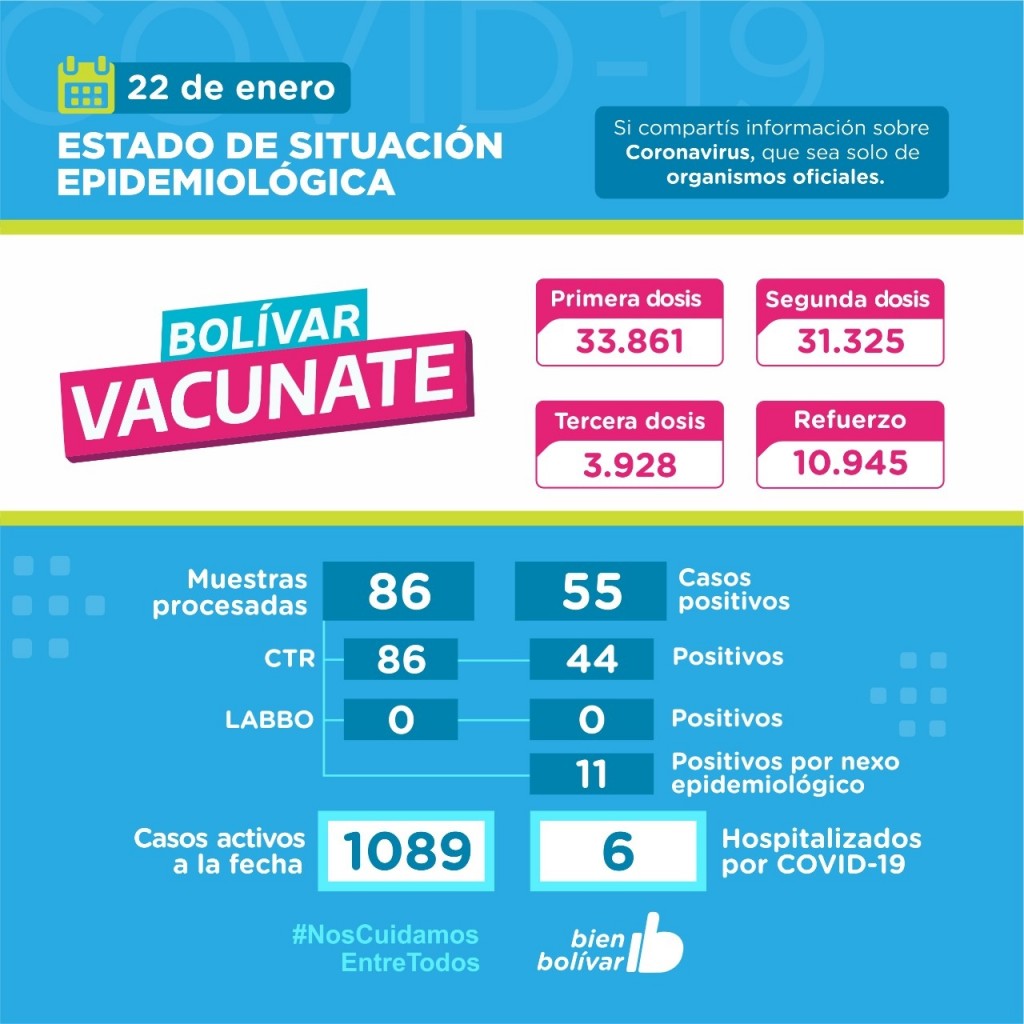 Desde el 3 de enero se sumaron 725 bolivarenses al plan de vacunación, colocándose la primera dosis.