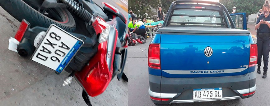 Una mujer mayor de edad transitaba a bordo de una camioneta Volkswagen Saveiro, con dominio colocado AD 475 QL, y coincidió en tiempo y espacio con dos motociclistas que circulaban en una moto Guerrero 150, con dominio colocadoA06 8XAD.