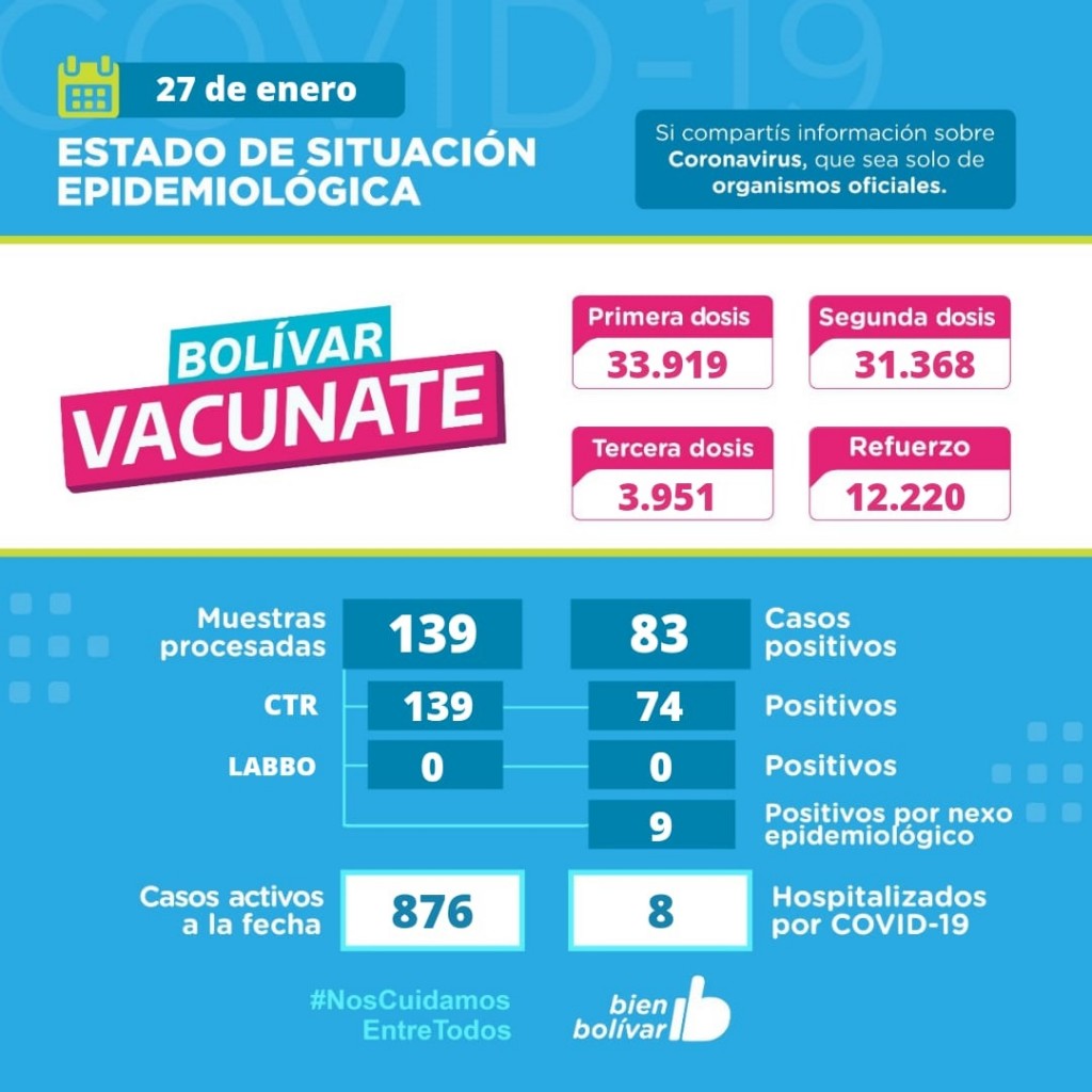 Este jueves, se detectaron 83 casos positivos y se acumulan 876 activos en el partido de Bolívar