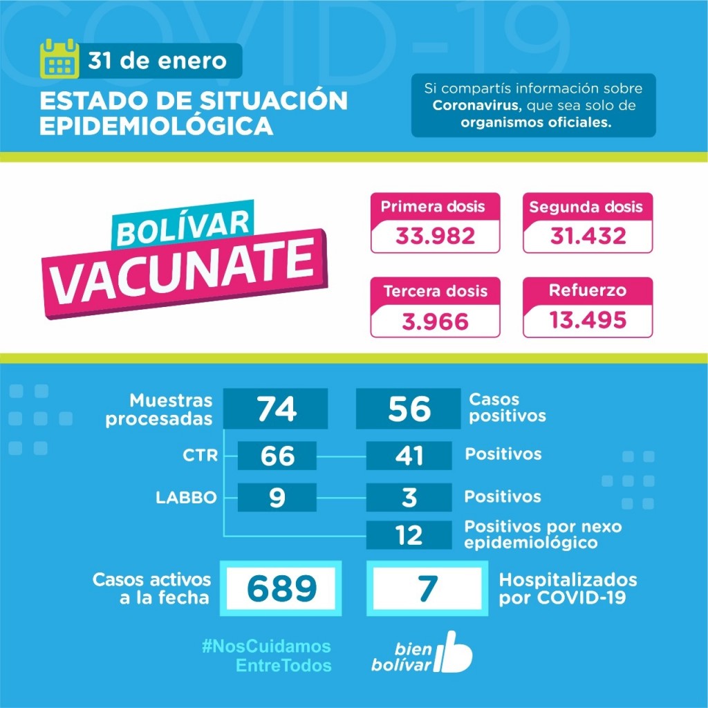 Por otra parte, se sumaron desde el 3 de enero 846 vecinos que fueron inoculados por primera vez, y de esa manera ingresaron al sistema tras la decisión de vacunarse, totalizando ya 33.982.