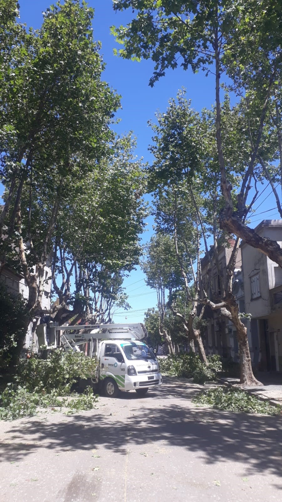 En el marco del Plan Integral de Limpieza y Mantenimiento que se desarrolla en Bolívar, la cuadrilla municipal del área de Espacios Públicos, llevó a cabo la limpieza de veredas y árboles en las calles Las Heras y Arenales.