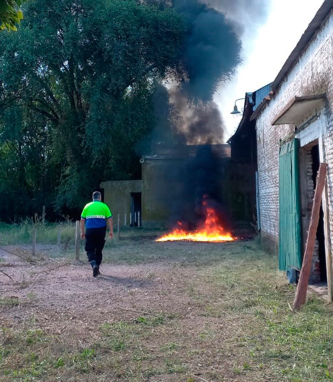 Los agentes del área Defensa Civil reportan a Bomberos el foco ígneo y asiste la unidad nº5 a cargo de la oficial Soledad Sardón.-