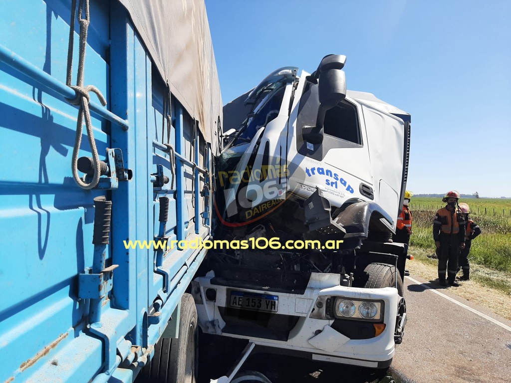 El conductor de un camión oriundo de Rufino (Santa Fe), ésta tarde salvó su vida de milagro, tras chocar violentamente a otro camión oriundo de la ciudad de Bolívar.-