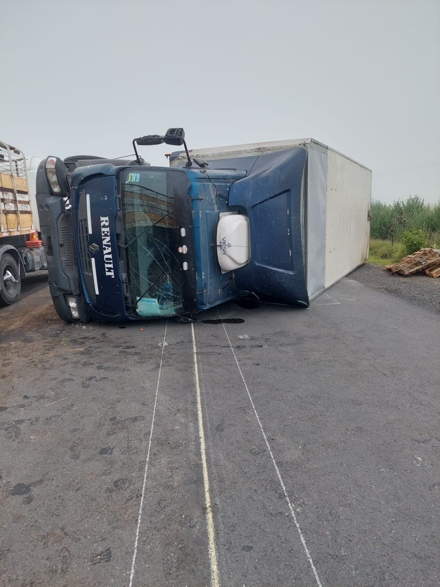 Esta madrugada, volcó un camión en ruta provincial 65, sentido a 9 de Julio a la altura de “Los 4 Vientos”