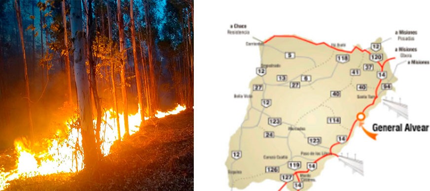 El avance del fuego afecta plantaciones forestales, bosques nativos, pastizales y zonas de humedales en portales de ingreso a los Esteros del Iberá.