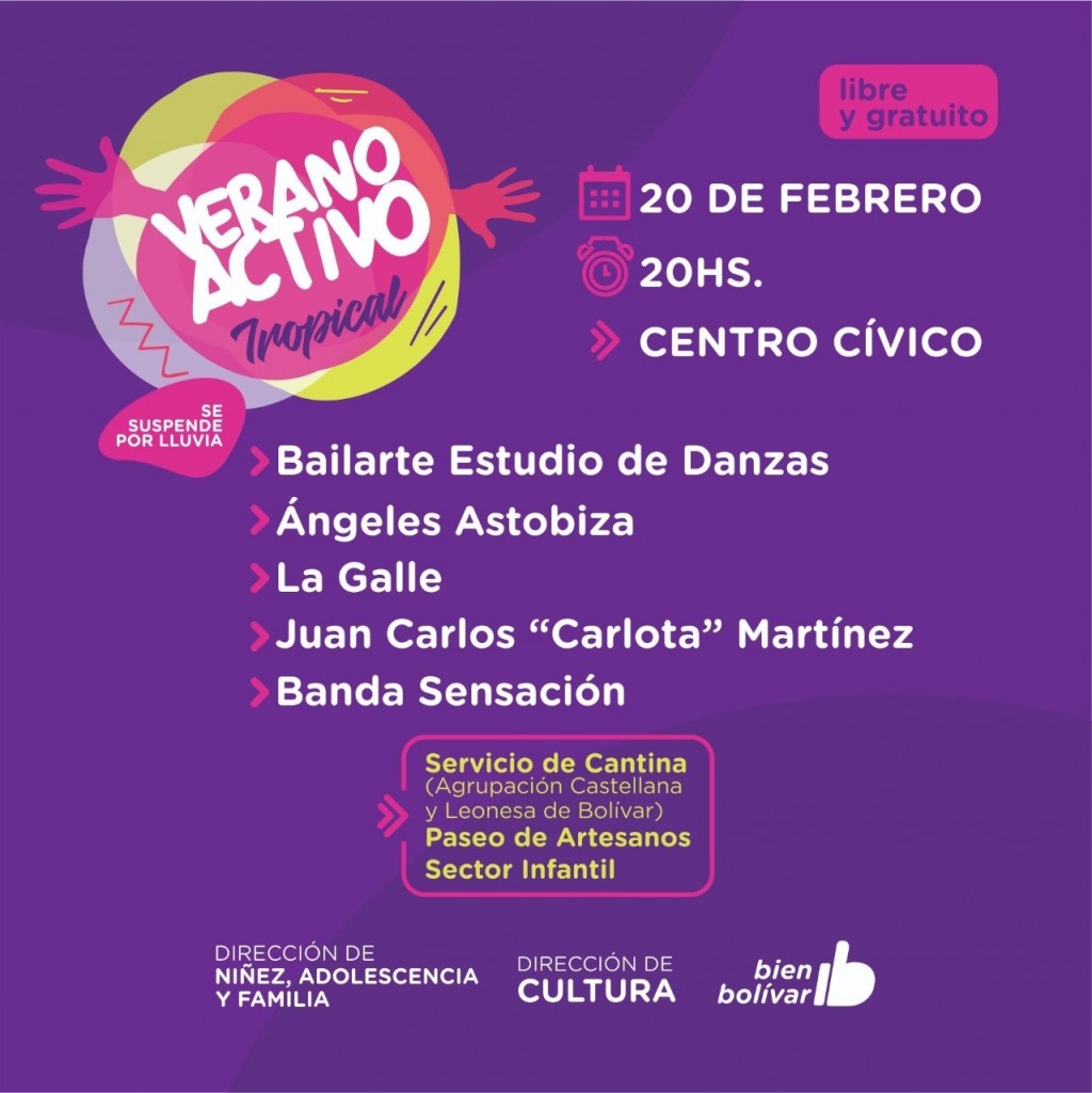 Desde las 20 horas, la Dirección de Cultura de la Municipalidad de Bolívar, invita a toda la comunidad a participar de una nueva jornada de Verano Activo en el Centro Cívico.