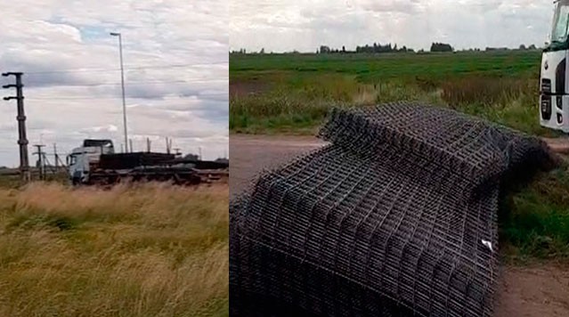 Rotonda Rutas 86 y 65: Un camión perdió mallas metálicas y se recomienda precaución en el tránsito