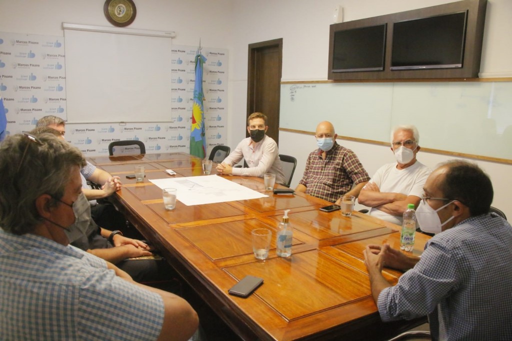 El jefe comunal recibió al presidente de la Sociedad Rural Fernando Alzueta, a Jorge Aguirre representante de la Cámara Comercial, a Javier Rodríguez de la Cooperativa Eléctrica, al presidente de la Cooperadora del Hospital Norberto García, al Dr. Hugo Mahuad referente de Rotary Club Bolívar; y por Bomberos Voluntarios participó Alejandro Bersani.